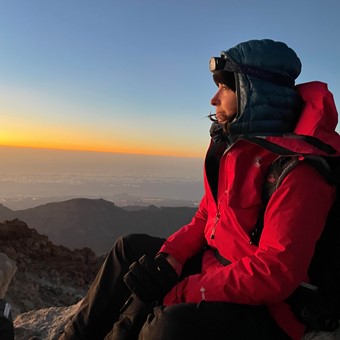 6th November, midnight, we started walking under the stars. 7 hours later, I was sitting at the top, close to the crater, waiting for the sun when this picture was taken. Pink and blue pastel colours, bright orange too. The sun said hi, slowly, a bit shy. Then we saw it: the shadow of Teide projected on the sea, rising to the sky.